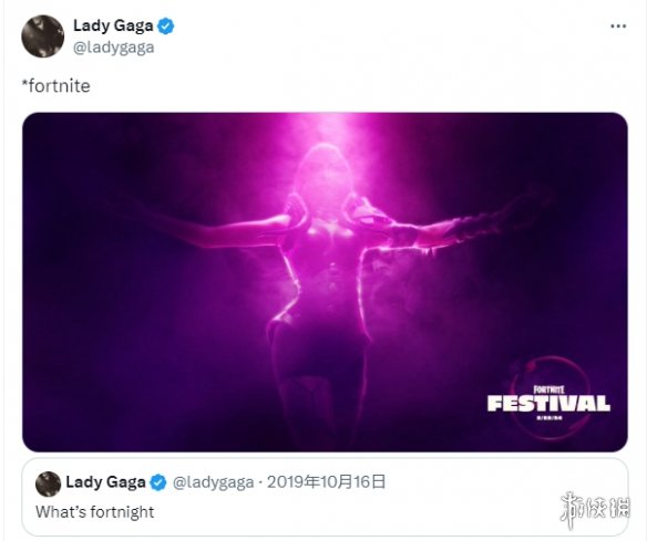 更有趣的是,Lady Gaga发布的这个预告引用了几年前她发布的帖子,当时她问自己的粉丝《堡垒之夜》是什么东西(甚至《堡垒之夜》的名字都拼写错了)。而到了2024年,这位歌手订正了拼写,看上去她对《堡垒之夜》也更加熟悉了。